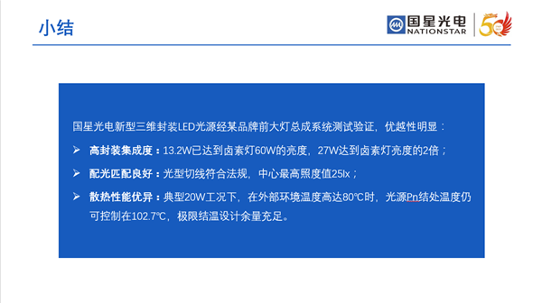 环亚币游国际新型三维封装LED具有发光角度大、集成度高、亮度高、可靠性高、散热性能优异等突出优势,其亮度比平面封装光源高45%,集成度是平面封装光源的10.7倍,流明密度是平面封装光源的18倍,其突出优势已经通过某品牌前大灯总成系统测试验证,引领了车灯高可靠性新趋势。