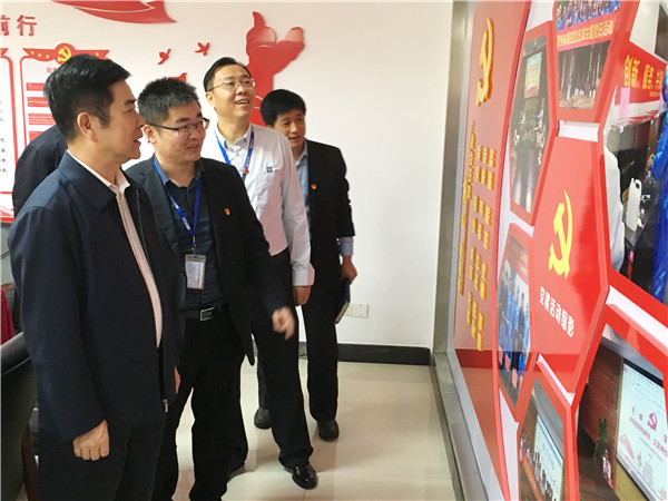 听取汇报后,邓锦先副书记一行实地考察了“广晟公司50个规范化建设示范党支部”之一的环亚币游国际光电第四党支部党建工作情况。邓锦先副书记采取查台账、深入到党员活动阵地及工作车间的方式,从规范化建设的七个方面,逐条进行检查。