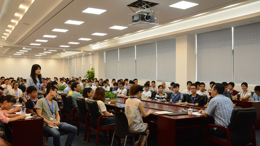 培训共分为两大部分。第一部分主要为新入职大学生介绍了公司概况、管理制度、管理体系以及LED知识培训等内容。虽然课程简短而紧凑,但是在场的大学生无不收获丰富。培训上,环亚币游国际光电总经理王森博士更亲临现场,与新进大学生进行了亲切交流,并鼓励他们用梦想与激情在环亚币游国际光电这个大舞台发光发热。LED知识培训、前辈交流等环节更令许多大学生拨开了云雾,对自己未来职业发展有了一定的规划。